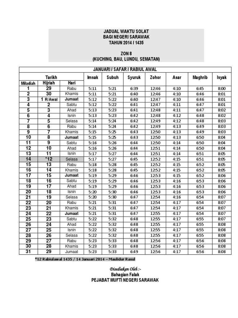 Waktu Solat Kuching Bau Lundu Sematan 2014 Pdf